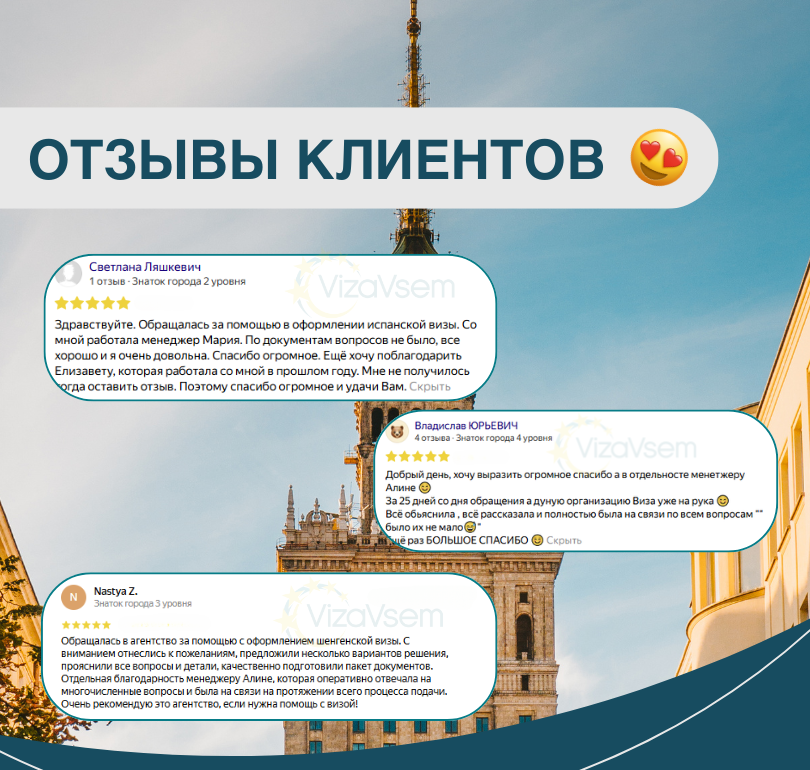 Во-первых, мы сохраним до 80% вашего личного времени. Во-вторых, поможем получить визу даже в «чистый» паспорт без лишних нервов.